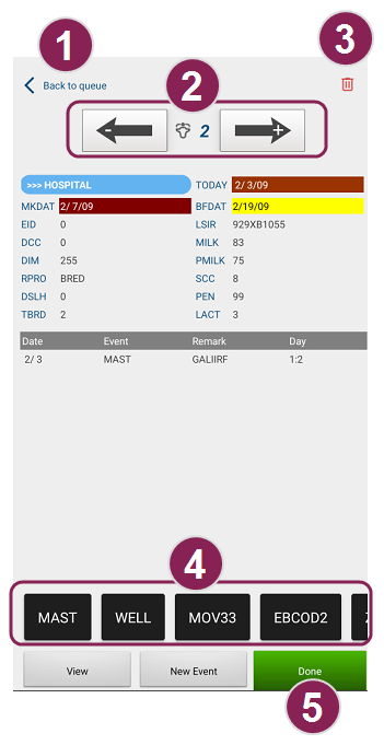 - Delete Icon: Tap to remove the animal from the list of queued animals and move it back to the To Do list.