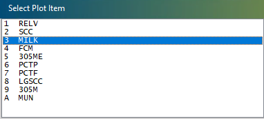 Change Items: Select a different numeric item to plot (e.g., switch from MILK to SCC or 305ME) without re-entering the command.
