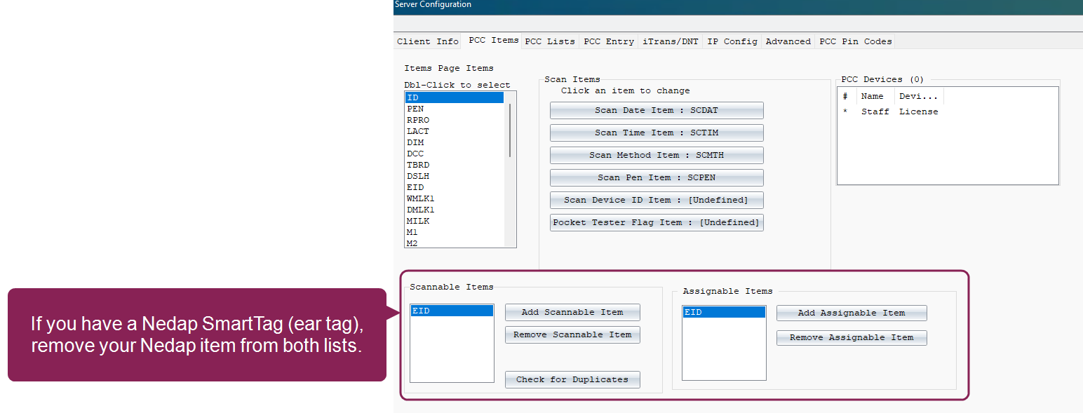 NOTE: If you are using a Nedap SmartTag (ear tag), you need to remove the Nedap item from the Assignable and Scannable lists in DC305. If you do not, you may scan and assign the wrong items. Follow the steps in Update Nedap Items to learn how.